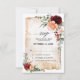 Cartão de RSVP Burgundy Pêssego Laranja Queimada com um buquê elegante de flores de rosa burgundy, vermelho, Marsala, grená, pêssego, salmão, coral e tons de rosa e folhas de eucalipto verde-sage. E textura de pergaminho com efeito watercolor desgastado. Por favor, entre em contato comigo para qualquer ajuda na personalização ou se você precisar de qualquer outro produto com este design.