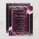 Um fundo burguês profundo decorado com florais robustos e cor-de-rosa, flores e falso brilho prateado, faíscas. Personalize e adicione seus nomes e detalhes do casamento. Letras negras.
