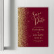 A borda esquerda deste elegante casamento moderno, exceto a data em que o cartão magnético apresenta uma borda falsa dourada. O texto personalizável combina manuscrito pálido e dourado, fontes copperplate e itálico em um fundo vermelho burgundy.
