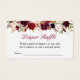 Estes cartões exibem uma emocionante luva vermelha, um motif floral, misturando elegância clássica com design contemporâneo. A rifa de fralda é uma tradição refletida, e essas cartas adicionam um elemento de estilo à experiência. Personalize-os com os detalhes do evento para torná-los exclusivos. Quer você esteja hospedando um chá de fraldas formal ou simplesmente adore a combinação de matizes ricos e estética floral, esses cartões são ideais.