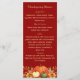 Burgundy colored background decorated with orange fall flowers and pumpkins. Personalize and add your Thanksgiving menu on the front.