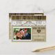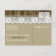 Burlap and Lace Save the Date Wedding Postcards - vintage temed ou country save the date apresentam um fundo de madeira com uma pá impressa e um design de cadarço em cima com um arco decorativo de fio. A frente também apresenta um design de coração "Salvar a Data" para personalizar com sua própria data de casamento e sua própria foto da escolha. A parte traseira apresenta o mesmo design impresso envolvido. Encontre cartões RSVP, convites, programas de casamento e muito mais abaixo nesta design para completar toda a suíte de casamento.