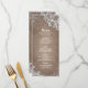 Lace branco elegante e brilho de prata brilhante no fundo da burlap rustic, cardápios de excelente para casamento rústico, casamento de celeiro e casamento de campo. Veja todas as peças correspondentes na coleção.