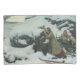 Este design apresenta uma pintura do artista finlandês-sueco Albert Gustaf Aristides Edelsense (1854-1905). Representa uma cena imaginária do tempo da Guerra de Cudgel de 1596-1597, que foi uma revolta camponesa na Finlândia, então parte do Reino da Suecia. Uma família pode ser vista aqui que fugiu da sua aldeia depois de ter sido queimada ao chão por um ataque militar. Há um velho com uma menina e um menino mais novo. A menina tem cabelo comprido em rabos de porco e está espreitando sobre uma pilha de pedras para vislumbrar sua aldeia destruída. O homem está sentado com suas possessões e ele segura uma besta, mas parece triste e derrotado. O menino ao seu lado parece apavorado. Há alguns esquis no chão ao lado da família. A paisagem é branca com neve. A obra original foi pintada por Albert Edelsense em 1879.