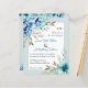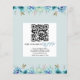 Flores de aquarela azul BUDGET convite para casamento verde da horta floral com código QR para RSVP. Ele mostra buquês de flores em tons verdes azuis e mint nos cantos enquanto seu texto é colocado em um quadro branco com uma borda. O verso inclui as terras florais nas partes superior e inferior e o código QR para os convidados digitalizarem e responderem.