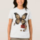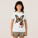Incêndio num mundo balbucioso de borboletas com esta design de camiseta cativante. Borboletas extremamente detalhadas em matizes de pasta macia dançam sobre um fundo de papel de bloco banido, criando uma peça verdadeiramente encantadora