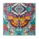 Azulejo cerâmico em uma borboleta digital grande sobre um fundo ornamentado, medalhão arabesco, em tons de âmbar, laranja, aqua e bege