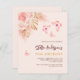 Um fundo de pêssego. Decorados com ouro rosa e flores, rosas, erva-pampas e borboletas cor-de-rosa. Personalize e adicione seu nome e detalhes. Fundo: fundo colorido de pêssego e borboleta. 1 folha = 1 convite impresso de borda a borda.
