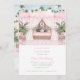 Este convite de festas de coquetel do lado do polo apresenta um guarda-chuva do lado do polo, cor-de-rosa e branco, no meio de duas cadeiras de salão. Todos os detalhes do podem ser editados para atender às necessidades do seu evento. Na parte de trás está uma fila de piscinas com guarda-chuvas tortas cor-de-rosa e branca, colocadas perto de uma piscina de natação.