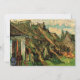 Cabanas de Arenito Cobertas de Palha em Chaponval por Vincent van Gogh é uma pintura arquitetônica pós-impressionista de arte fina vintage que apresenta uma vista de casas com telhados de palha e pessoas em pé numa porta na aldeia de Chaponval, França.