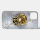 Cabeça conceitual, mecânica, humana com manômetro antigo e engrenagens metálicas contra fundo industrial das cinzas. Estilo Steampunk.