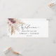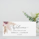 Este cabeçalho de boas-vindas de assentos de boho pampas pendurado é perfeito para um casamento de verão. O design de aquarela floral apresenta uma burgundia boêmica e flores cor-de-rosa pinceladas com ranhuras de erva-pampas neutra e folhas de palma secas de ouro. A placa impressão na frente e atrás (lado duplo). Verifique a coleção de placas de números de tabela de coordenação.