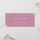 Cabeçalho de gráfico de assentos cor-de-rosa elegante com delicados elementos caligraficos modernos manuscritos. Placas de coordenadas de assentos disponíveis. Um cartão de lado duplo para que os convidados possam procurar os seus nomes, tanto de frente como de trás. Espaço livre ao redor, dando-lhe a liberdade de usar clipes ou furos de socos para exibições suspensas. Parte da nossa coleção "Mauve Pink Watercolor Monographic Wedding" com uma variedade de produtos de coordenação disponíveis, incluindo cartões de assentos correspondentes, cartões de números de tabela e menus.