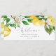 Este moderno salão do jardim de limão pendurado é perfeito para um casamento de primavera ou verão. O design mediterrânico rústico apresenta limões aquosos brilhantes e bonitos com flores brancas boêmicas e folhas verdes elegantes. A placa impressão na frente e atrás (lado duplo). Verifique a coleção de placas de números de tabela de coordenação.