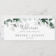 Este cabeçalho de boas-vindas do esmerald greenery pendurado é perfeito para um casamento de boho. A elegante, porém rústica, design apresenta folhas de cor verde-d-água escura e umeucalipto com uma moderna sensação de floresta boêmica. A placa impressão na frente e atrás (lado duplo). Verifique a coleção de placas de números de tabela de coordenação.
