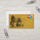 Um cartão de visita para alguém um serviço do cabeleireiro das crianças de oferecimento. A imagem mostra um urso que levanta-se, cortando o cabelo de um urso que senta-se para baixo. Esse sentado para baixo está vestindo um avental amarelo do pescoço para travar o cabelo do corte. Para fazer-lhe alegre extra, três balões estão flutuando no canto.