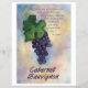Cabernet Sauvignon Wine Graphics Painting: A pintura exibe uvas de vinho Cabernet Sauvignon. A citação diz, "Um vinho tinto com sabor especial de groselha preta com dicas de cigarro, cedro e menta. Ele tem um estilo bem arredondado e pode ser considerado o rei da uva vermelha." Criado em aquarela.