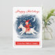 Carro de diversão com espírito feriado no cartão de saudação Feliz Feriados de neve