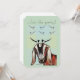 Personalize seu próprio convite 5x7 ou cartão. Escolha todo o papel. Ilustração por TR Forsman, actualizado do desenho mais adiantado. A cabra de Nubian com dois magpies empoleirou-se em sua cabeça. fundo: um teste padrão dos magpies em verdes da xadrez. Desenho original de uma cabra com magpies selvagens.