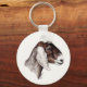 Esta chaveiro apresenta uma reprodução do desenho original de um lápis colorido de uma cabra Núbia.