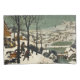 Este design apresenta uma pintura de óleo em madeira do artista do século 16 Pieter Bruegel, o Velho (1525/1530-1569), que foi um dos artistas mais importantes da pintura Renascentista holandesa e flamenga. Mostra uma cena da época de inverno em que três caçadores podem ser vistos retornando de uma expedição acompanhada por seus cachorros. Os caçadores não foram muito bem sucedidos e seus cachorros parecem cansados e cansados. É uma cena de excelentes. Mas um dos homens é o carregando do corpo delgado de uma raposa morto. Numa pousada próxima, alguns adultos e uma criança preparam a comida sobre um fogo aberto. Pássaros como corvos e pincéis estão sentados em árvores nuas; alguns críticos viram-nas simbolicamente como mães maus. A paisagem é um vale de fundo plano coberto de neve branca, e há um rio percorrendo-o; pessoas também jogam hóquei ou patinagem de gelo em lagos congelados. Há picos de montanha selvagens no fundo, apesar de tais cimeiras não existirem nos Países Baixos da Bélgica, Países Baixos e Luxemburgo. A pintura também é, por vezes, intitulada "The Return of the Hunters"; seu título original holandês é "Jagers in de sneeuw" [Caçadores na Neve]. A obra original foi terminada em 1565 e agora está abrigada no Museu de Artes Cruzadas de Kunsthistorisches, Viena, Áustria.