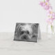 Nada diz fofo como um cachorrinho Yorkshire Terrier! Este divertido cartão de cumprimentos apresenta um retrato em preto e branco de um adorável filhote de Yorkie descansando em um alpendre de madeira. Ela está pronta para ajudá-lo a enviar cumprimentos a familiares e amigos.