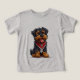 Cachorro adorável em estilo desenho animado com um casaco vibrante. Tem uma mistura de pelos pretos e marrons, caracterizados por texturas fofas e onduladas. O cão está sentado ereto com uma expressão brincalhona, com a língua para fora e mostrando um comportamento alegre. Está usando um lenço vermelho brilhante em volta do pescoço, o que adiciona um toque de cor ao visual geral. O fundo é branco simples, fazendo com que o cão se destaque como o ponto focal da imagem. O estilo geral é alegre e envolvente, capturando perfeitamente a doçura do cão.