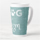 Aproveite o seu café da manhã com um Cachorro Teal Burlap Mãe Latte Mug. Latte Mug design apresenta um fundo teal de burlap com a Mãe de Cachorro adornada com uma pata e coração rico. O padrão de burlap é renderizado artificialmente e o produto acabado não será fabricado com material de burlap. Itens de presentes adicionais disponíveis com este design, bem como uma variedade de cores.