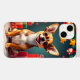 Um cão Chihuahua alegre sentado contra um fundo festivo de feriado com ornamentos coloridos, fitas e caixas de presentes embrulhados. Esta imagem captura a essência calorosa e alegre da temporada de Natal.