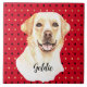 Ilustração de aquarela do cão Labrador Retriever sobre fundo de harlequina vermelho, preto e dourado. Personalizar com nome ou mensagem especial