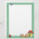 Esta linda cartoon letterhead tem uma borda verde com ossos de cachorro correndo pelos quatro lados, e um cachorro dormindo na frente de uma casa de cachorro na base.