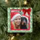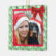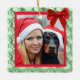 Adicione a sua foto favorita do seu animal de estimação ou de você e do seu cão ou gato ao ornamento na área personalizada. Moldura verde com pegadas e arco vermelho.