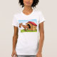 Este design é um cachorro em uma casa de cachorro. A casa de cachorro é de madeira com telhado vermelho e o cachorro está longe. Este cachorro na design de uma casa de cachorros parece excelente nesta Camiseta das Mulheres