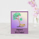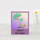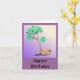 No cobrir, este cartão comemorativo de aniversário elegante e engraçado diz, "Parabéns" com um cão de desenho animado levantando a perna em uma árvore. Dentro diz: "Espero que encontre uma boa árvore." Perfeito para aquele homem que gosta de visitar árvores, digamos?