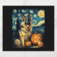 Cachorro German shepherd Bonito Jack O Lanterna Pumpkin Face Starry Night Van Gogh Estilo