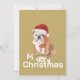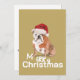 Este não é o seu cartão de férias médio! Ele apresenta um adorável Bulldog Inglês em um chapéu de Papai Noel, combinado com uma fonte moderna e atraente para o texto "Feliz Natal". A risca e quebrada carta dá ao design uma reviravolta nova e criativa, perfeita para aqueles que amam uma carta com um pouco de personalidade. Este cartão de alta qualidade é uma maneira divertida de compartilhar alguma alegria de férias com amigos e familiares, especialmente aqueles que amam um bom cão e um design único.