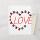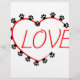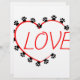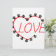 Desenhos de estampas de pata de cachorro, um coração vermelho e a palavra "amor". Design original.