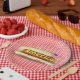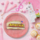 Cachorro quente de feriado em prato de papel xadre