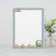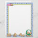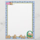 Esta linda cartoon letterhead tem uma borda azul com estampas de pata ao longo da parte superior e de ambos os lados, um cachorrinho marrom com sua cabeça em um saco de papel no canto superior esquerdo, e vários cachorros marrons e uma cesta ao longo da borda inferior.