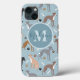 Cães de galgos brancos italianos sentam-se e ficam com cinzas, casacos pretas, negras, vermelhos e azuis, com ossos de cão espalhados e padrões de pestanas com nome personalizado e monograma.