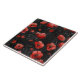 Cachorros vermelhos num fundo preto. Padrão floral de aquarela.