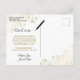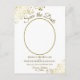 Este belo cartão de anúncio de casamento é projetado para dar aos seus amigos e familiares um aviso prévio do seu casamento. Ele apresenta um design simples, porém elegante, com texto dourado em fundo branco e sua foto em uma moldura oval rodeada por cachos e espirais dourados de pseudo-folha metálica rendada. O verso tem um gráfico fofo que diz "marque-nos na sua agenda" e espaço para uma nota personalizada.