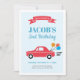 Este mão adorável convite tirado do aniversário do carro tem um encanto retro agradável. Todos os detalhes são customisable.