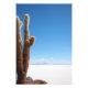 Impressão de foto de um cacto gigante nos apartamentos de sal branco do Salar de Uyuni, na Bolívia.