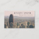 Um cartão de visita que caracteriza uma fotografia original de uma paisagem calma do deserto com os cactos do saguaro e de pera espinhosa.