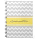 Um jornal espiral bonito com o limão brilhante elegante e moderno - os ziguezagues retros do amarelo, do cinza e os brancos das vigas listram o teste padrão. Personalize este caderno com seu texto conhecido ou feito sob encomenda.