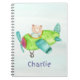 Caderno de Fotos Espiral Personalizado com Nome, Avião e Urso. Também é uma ótima ideia de presente!