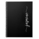 Caderno Espiral de Letra Moderna Simples Feminina Monograma Preto. Este design minimalista de cor simples apresenta seu primeiro nome em uma linda tipografia de letra manuscrita com cauda em branco sobre fundo preto. Fácil de personalizar. Ótimo presente personalizado feminino para festa de aniversário, casamento, festa de aniversário de 16 anos, chá de noiva, chá de bebê e para quem ama estilo minimalista charmoso.