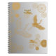 CADERNO ESPIRAL 縁起の良い金色の日本の鶴模様《白×シルバー》ジャーナル