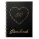 50th Preto dourado elegante do fundo do preto da tipografia do livro de hóspedes da festa de aniversário do casamento do aniversário 50th do aniversário de casamento dourado 50th do aniversário do aniversário e coração Dourado do olhar, caderno espiral